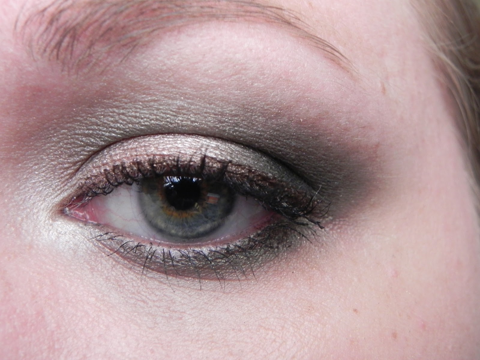 Using the same matte eyeshadow smudge the liner on the lower lash line all the way into the inner eye area. Create a rounded eye shape at this point, but don't worry about the edges being perfect.